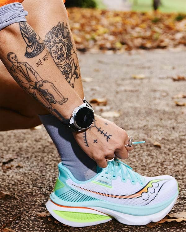 Le design de l’Azura combine un style heritage Saucony avec des lignes modernes et légères. Le mesh respirant et l’empeigne sculptée assurent un maintien précis, tandis que le col rembourré et la languette fine réduisent les points de pression. Résultat : une chaussure prête à l’emploi, confortable dès le premier pas.